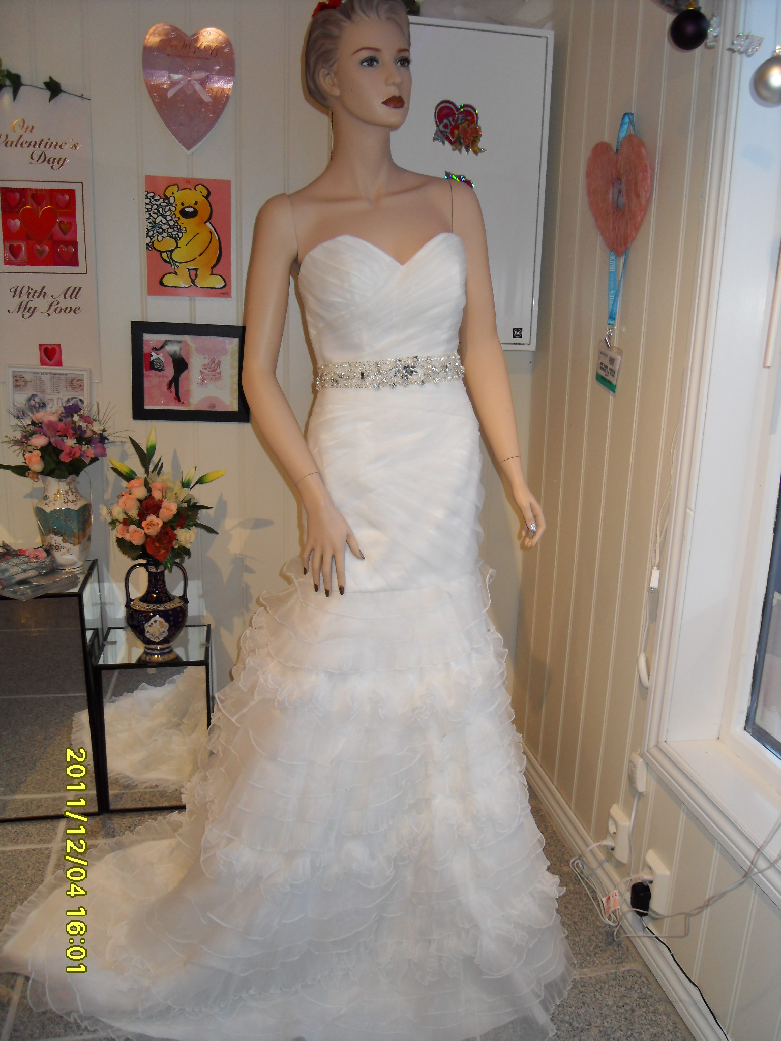 - Brudekjolen er dårlig i kvalitet; slaskete stoff, glidelåser stygt montert i, løse tråder og pynt som faller av.