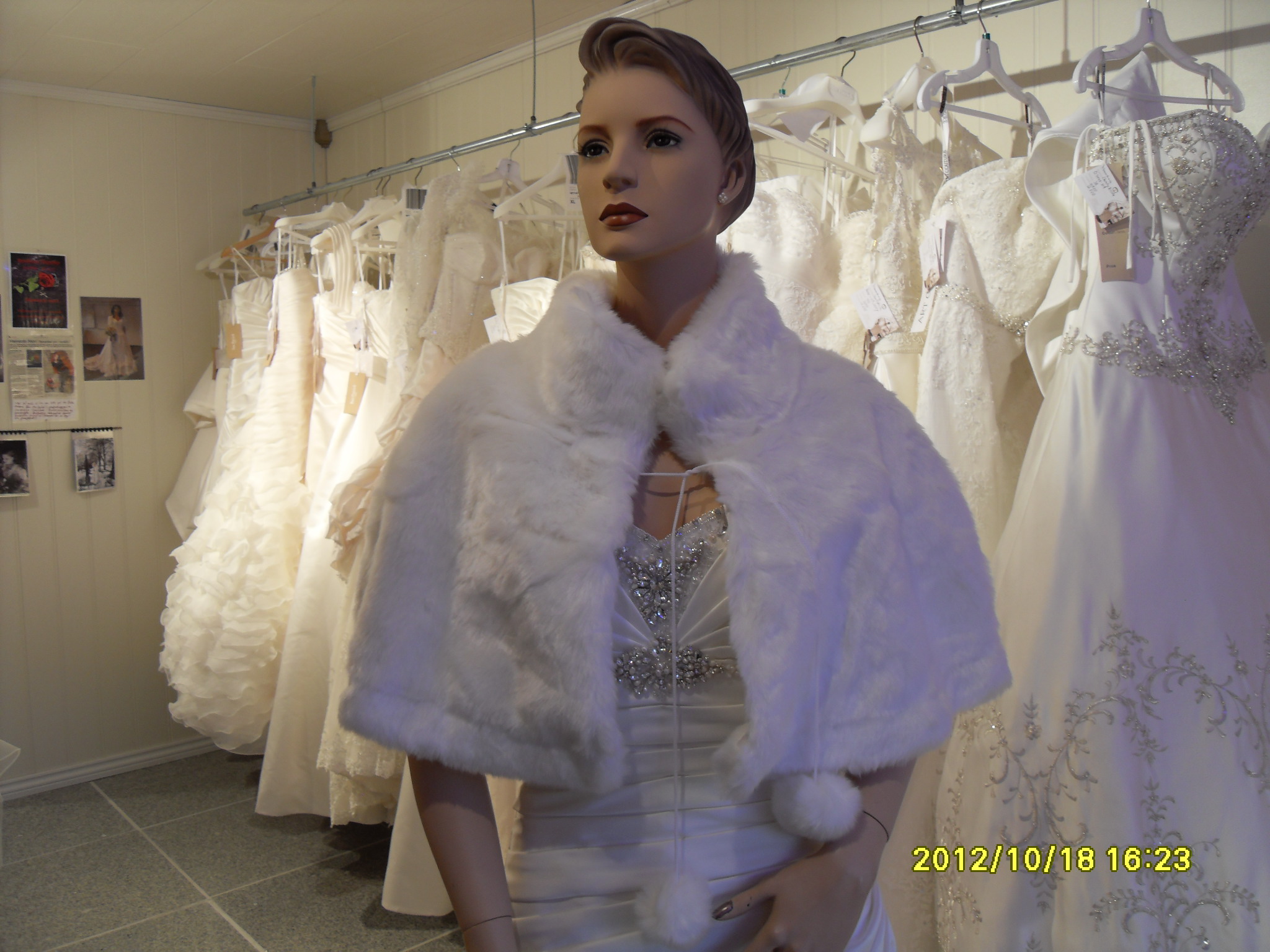 Også går det mot vinter igjen, og for vinterbrudene har vi fått inn brudecape i juksepels i fargen ivory, knytes foran med band med dusker, one size