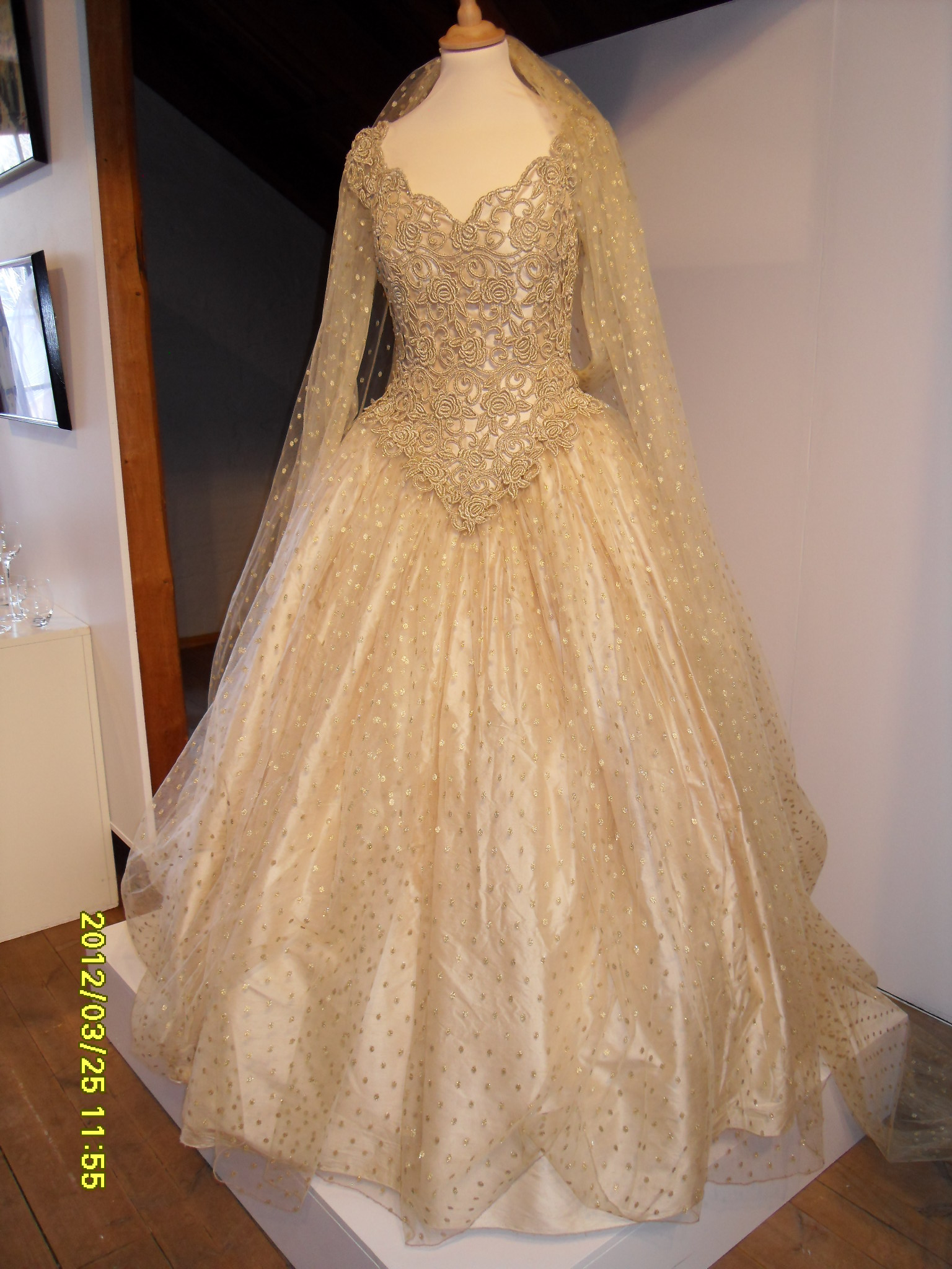Vi besøkte utstillingen "Prinsesse for en dag", det samme som vårt firmanavn, som fant sted på kunstmuseumet på Hadeland Glassverk i månedene mars og april 2012. Her ble det vist brudekjoler som kjente og ukjente bruder hadde båret gjennom de siste 250 år. Flere brudekjoler var lånt ut som hadde blitt båret av kjente bruder, men også andre, og da flere som hadde hatt sin tilknytning til Hadeland Glassverk på en eller annen måte. Brudekjolen har forandret seg mye gjennom tidene, fra enkle fargede kjoler for lenge siden, til dagens flotte brudekjoler. Utstillingen er åpen helt til slutten av april, og er verdt et besøk hvis man først er på de kantene. Her er en liten "smakebit", dras det kjensel på noen av disse flotte brudekjolene, hvem som har båret de?