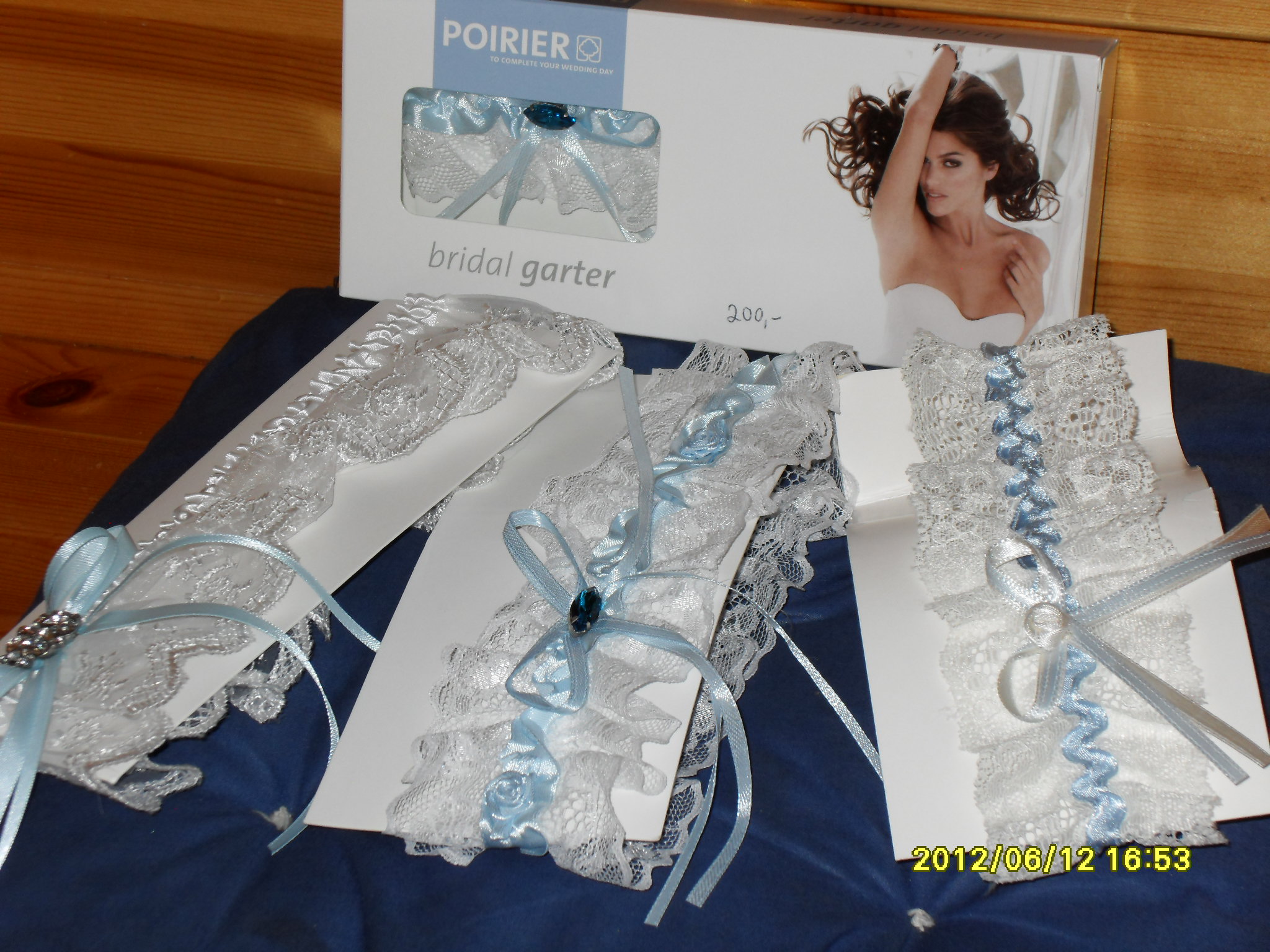 "Something blue......." - lekre strømpebånd i blonder leveres i elegant eske med "til/fra" tekst på!